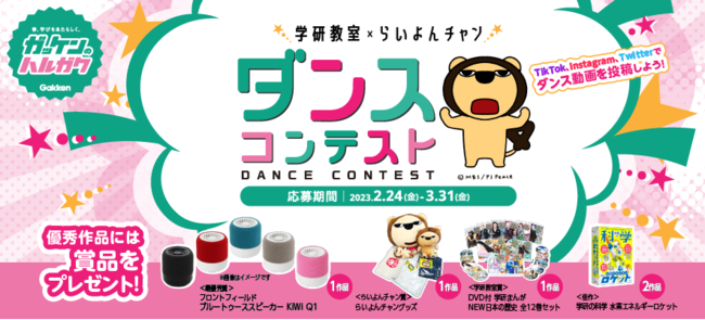 株式会社学研ホールディングス(東京・品川/代表取締役社長:宮原博昭)のグループ会社、株式会社学研エデュケーショナル(東京・品川/代表取締役社長:川端篤)は、2023年2月24日(金)から3月31日(金)に、TikTok・Instagram・Twitterにて『学研教室×らいよんチャン ダンスコンテスト』を開催することをお知らせします。