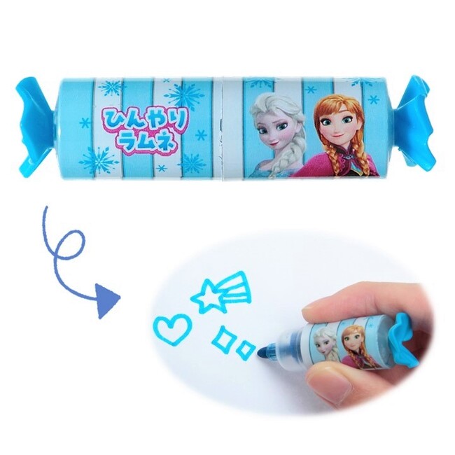 エルサとアナが目印のラムネ型のペン。キャップを外すとお絵かきができます! インクはさわやかな水色です★