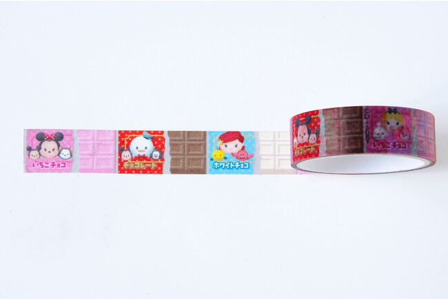 ツムツムがいっぱいの、板チョコみたいなマスキングテープ。チョコレート、いちごチョコ、ホワイトチョコの3種類で、好きな長さで切って使えます♪