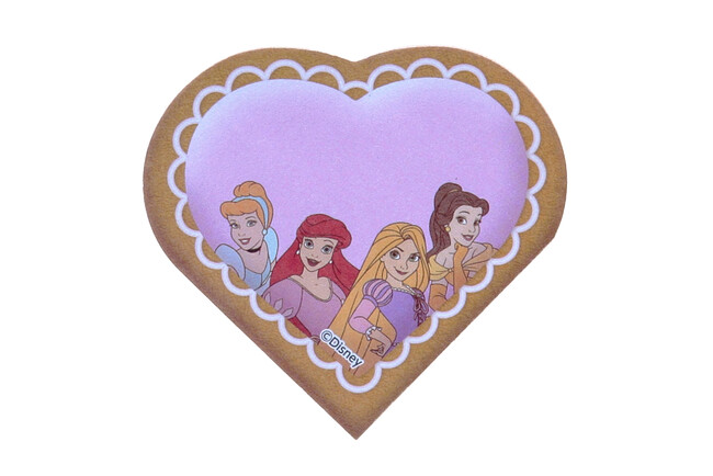 シンデレラ、アリエル、ラプンツェル、ベルが並んだ、クッキー風のメモ。空いているところにメッセージを書いて、大切な人に渡しましょう♥