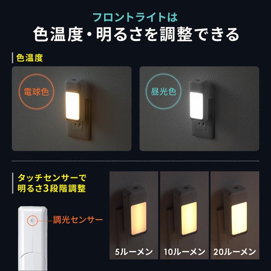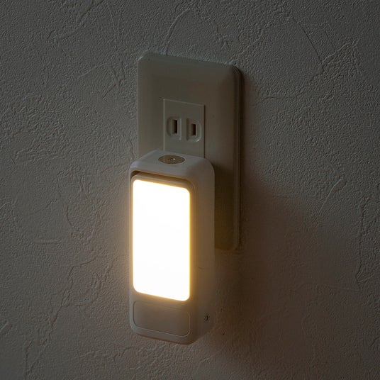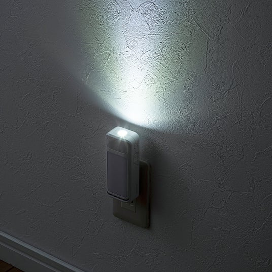 コンセントへ上下どちらでも取り付け可能で停電を自動感知してライトが自動点灯するフットライト/センサーライト
