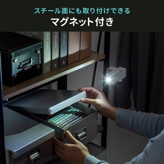 バッテリー搭載モデルで、電源のない場所でも作業灯として使用可能です。さらに、マグネット内蔵でスチール面に固定できるため、幅広いシーンでの活用が期待できます。