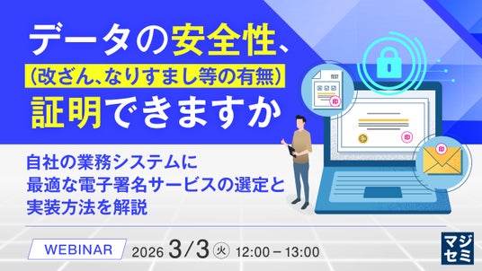 マジセミ株式会社は「データの安全性(改ざん、なりすまし等の有無)、証明できますか」というテーマのウェビナーを開催します。