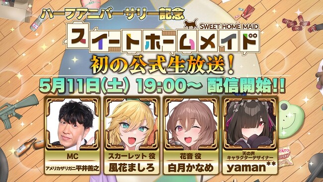 MCに「アメリカザリガニ・平井善之」さん、ゲストに声優の「風花ましろ」さん、「白月かなめ」さん、キャラクターデザイナー「yaman**」さんなどを迎え、開発担当者やプロデューサーも出演予定。
