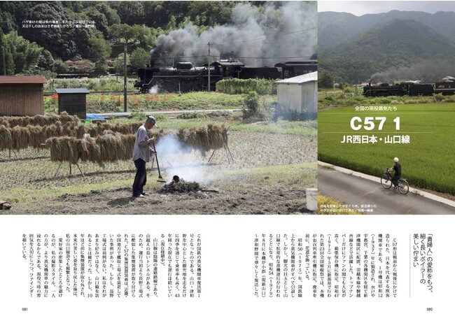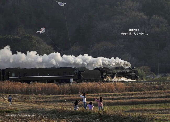 鉄道写真家・都築雅人氏が撮影する蒸気機関車は、どこか昭和の雰囲気が漂います。グラフページ「煙情日記」では、その土地に住む人々の情景を写し込んだ、臨場感あふれる風景を展開、また本文では撮影エピソードを随所に盛り込み、地元の人々とのコミュニケーションを大切にする都築氏の制作スタイルが伝わる内容となっています。