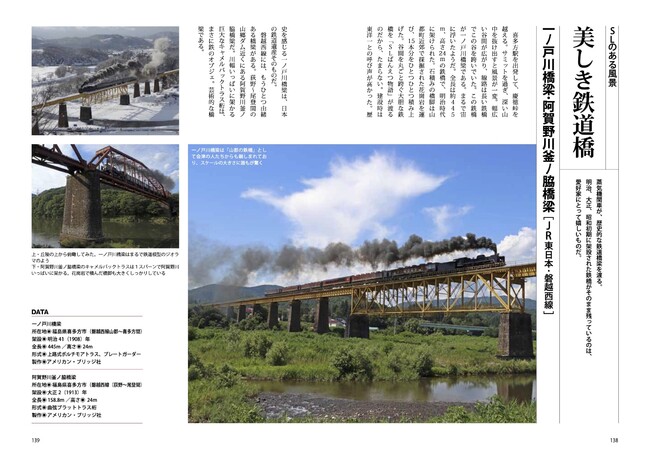 鉄道写真家・都築雅人氏がライフワークとして撮影した、蒸気機関車の迫力ある写真を中心に、各車両の製造車両数やスペック(最高速度・重量等)のデータ、動態保存されている公園、撮影名所の鉄道橋など、資料も満載の一冊です。