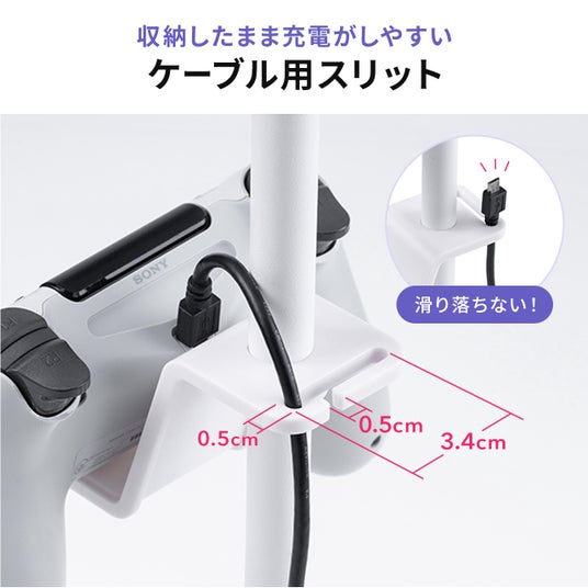 各スタンドはケーブル用スリット付きで、収納したまま充電がしやすい構造になっています。