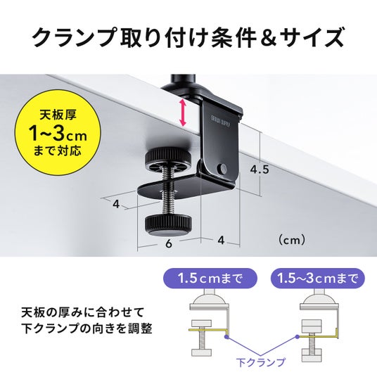 デスクに挟むだけの簡単なクランプ式で、不意に手が当たっても倒れず安心して使えます。