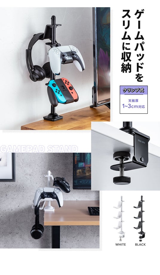 ゲームパッドをすっきり収納することができるクランプ固定式ゲームパッドスタンドです。