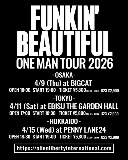 さらに、4月8日にリリースされるALI結成10周年イヤー記念アナログアルバム第一弾「FUNKIN’ BEAUTIFUL」にも本曲が収録される。4月からはアルバムタイトルを掲げたALI “FUNKIN’ BEAUTIFUL” ONE MAN TOUR 2026 の開催も決定しており、チケットは一般発売中。