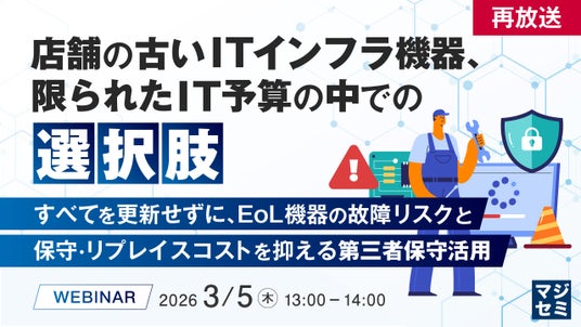 マジセミ株式会社は「【再放送】店舗の古いITインフラ機器、限られたIT予算の中での選択肢」というテーマのウェビナーを開催します。