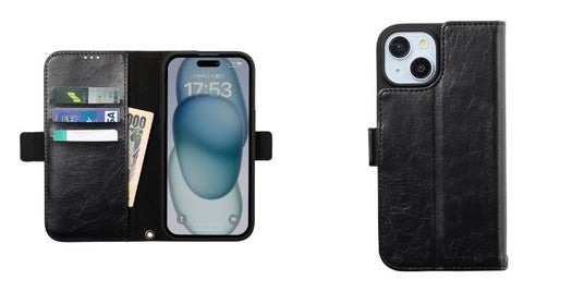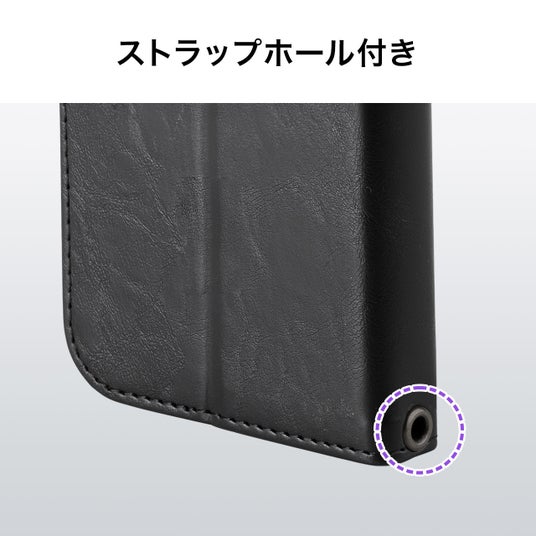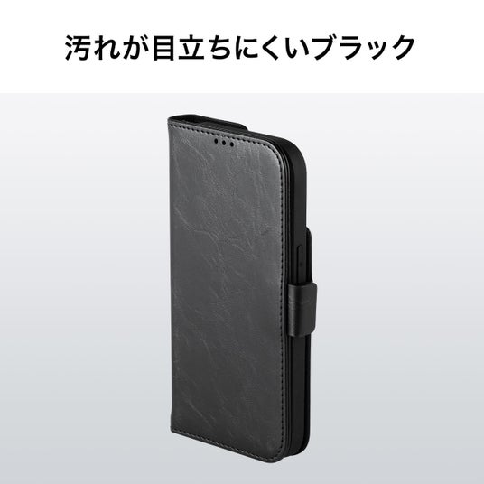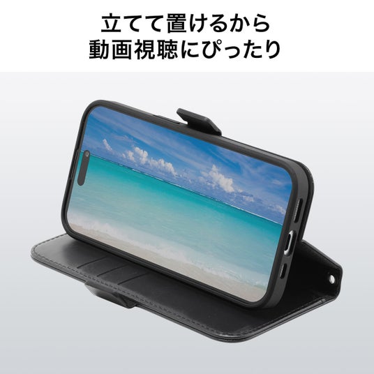 iPhone15シリーズ 専用 手帳型ケース ブラック PUレザー 収納ポケット スタンド機能 画面保護 ストラップホール付き