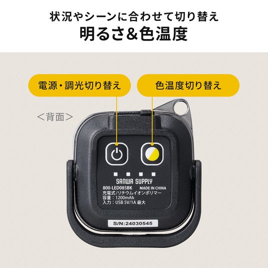 サンワサプライ株式会社(本社:岡山市北区田町1-10-1、 代表取締役社長 山田 和範)が運営している直販サイト『サンワダイレクト』では、カラビナフック、マグネット固定、スタンド機能を搭載し明るさは4段階/色温度は4段階変更可能なコンパクトライト「800-LED085BK」を発売しました。