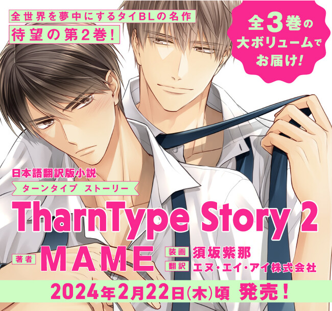 株式会社フロンティアワークス(アニメイトグループ)は、大人気タイBL作品「TharnType Story(ターンタイプ ストーリー)」の日本語翻訳版小説の2巻を2024年2月22日(木)頃に発売します。