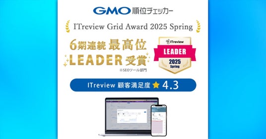 GMOインターネットグループの、GMOインターネット株式会社(代表取締役 社長執行役員:伊藤 正 以下、GMOインターネット)が提供するクラウド型SEO順位チェックツール「GMO順位チェッカー」(https://rank-checker.com/)は、アイティクラウド株式会社が運営する「ITreview Grid Award 2025 Spring」のSEOツール部門で、6期連続最高位となる「Leader」を受賞しました。