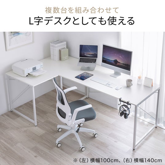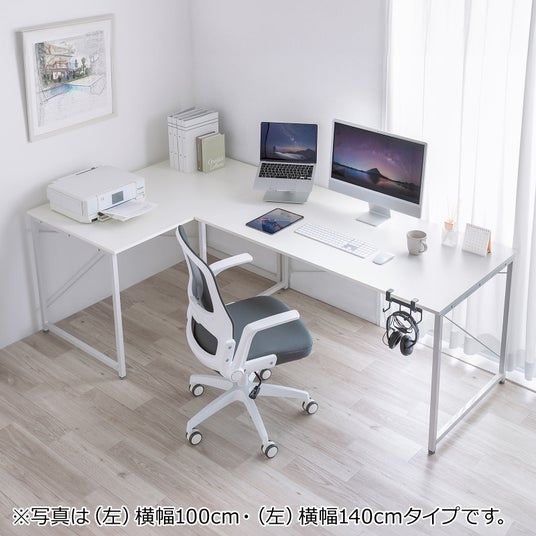 このデスクは単体でも使えますが、複数台を組み合わせてL字デスクとしても活用できます。幅広いサイズから選べるので、既製のL字デスクではサイズが合わない方におすすめです。また、オフィスや在宅ワークの空間に合わせて、自由にレイアウトを変更できるのも魅力です。
