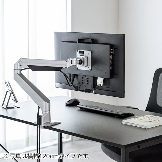 耐荷重が50kgあるので、パソコン本体やプリンタ等を並べて設置することができます。さらに補強プレート(100-LA065シリーズ)を使用すれば、クランプ式のモニタアームを取り付ける事ができます。