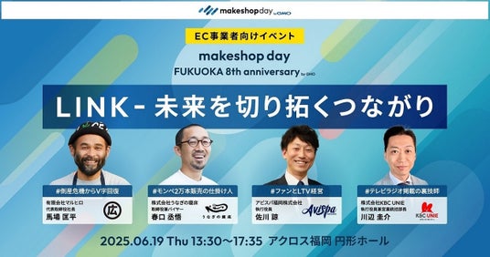 GMOインターネットグループのGMOメイクショップ株式会社(代表取締役社長CEO:向畑 憲良、以下、GMOメイクショップ)は、2025年6月19日(木)に、GMOメイクショップ福岡支社の開設8周年を記念し、ECサイト運営担当者などを対象としたイベント「makeshop day FUKUOKA 8th anniversary byGMO」をアクロス福岡(福岡市中央区)にて開催します。本イベントへの参加受付は、5月19日(月)より開始します。