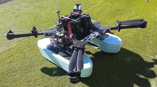 水難事故を想定し、人命救助ドローンにて救助動作を再現