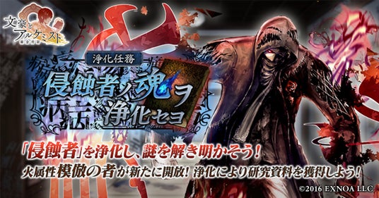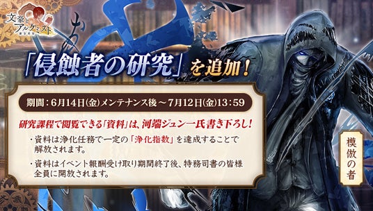 合同会社EXNOA(本社:東京都港区、CEO:村中 悠介、URL:https://games.dmm.com/)が運営するDMM GAMESは、6月24日(月)より、女性向け文豪転生シミュレーションゲーム「文豪とアルケミスト」において、イベント『浄化任務「侵蝕者ノ魂ヲ浄化セヨ」』を更新いたしました。