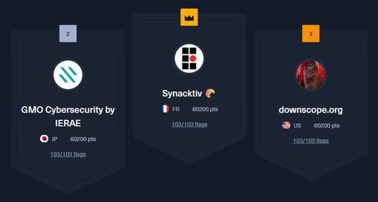 GCSBは実践的な知識や技術を評価することに重点を置いた問題が出題されることが特徴で、今年はWebアプリケーション、リバースエンジニアリング、暗号、クラウド、産業用制御システムなど、様々な分野における企業のサイバーセキュリティの実践的な問題が40種類以上出題されました。 GMOサイバーセキュリティ byイエラエは、出題された問題を全問クリアし、656チームが参加するなか、世界2位、国内1位を獲得しました。
