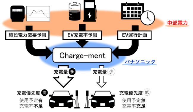 パナソニック株式会社(以下「パナソニック」)と中部電力株式会社(以下「中部電力」)は、電気自動車(以下「EV」)の最適な充電管理システムの構築に向けた実証試験(以下「本実証」)を本日より開始します。