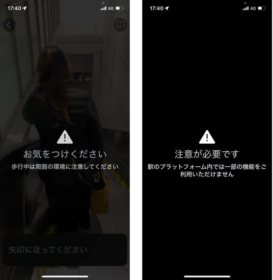 1.使用開始時には注意喚起され、駅プラットフォームでは使用制限がかかります。