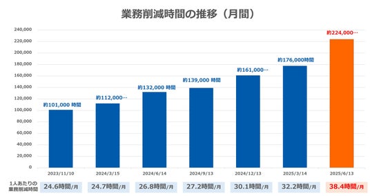 ・ 生成AIの活用で、ひと月あたり約22.4万時間(前回調査差+約4.7万時間)の削減、1人あたり約38.4時間(前回調査差+約6.2時間)の削減を実現しました。