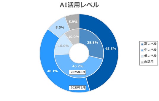 ・2025年6月時点で全体の生成AI業務活用率は94.1%(前回調査差+4.1ポイント)
