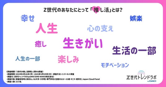 - 「人生」「生活の一部」など、「推し活」を、趣味を超えた“心の支え”として捉えるZ世代の姿が浮き彫りに。