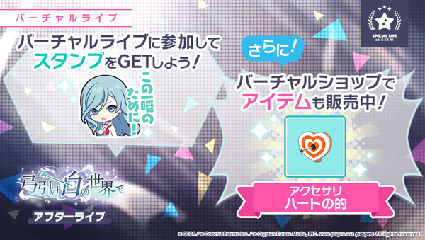 また、「弓引け、白の世界で アフターライブ」の開催に先立ち、12月21日(水)からバーチャルショップにて、アクセサリ「ハートの的」を販売中です。