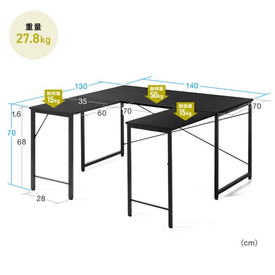 コの字デスク シンプルデスク 幅140cm 奥行130cm ブラック モニターアーム対応