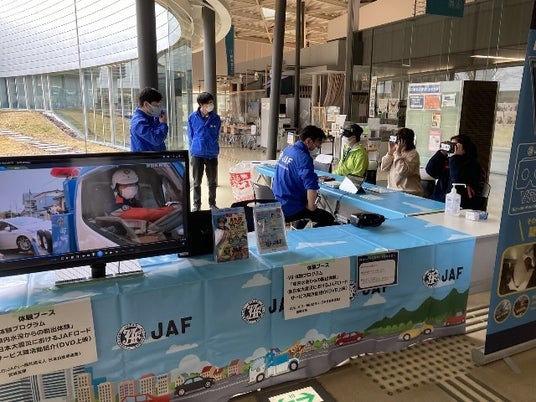JAF宮城支部では、災害・震災時の命を守る行動を知ってもらうため、「VRゴーグルを使ったクルマの水没疑似体験、車内からの脱出方法のアドバイス、震災時のロードサービス状況について説明するなど出展協力いたします。