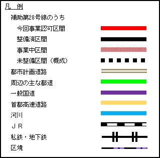 補助第28号線は、大田区東海三丁目から同区下丸子二丁目に至る延長約14.3kmの都市計画道路です。