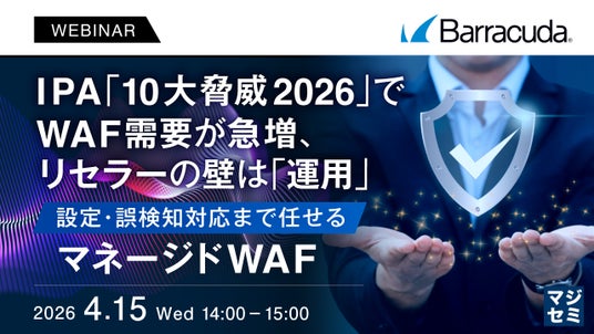 マジセミ株式会社は「IPA「10大脅威2026」でWAF需要が急増、リセラーの壁は「運用」」というテーマのウェビナーを開催します。