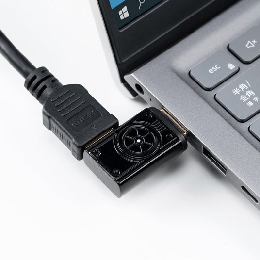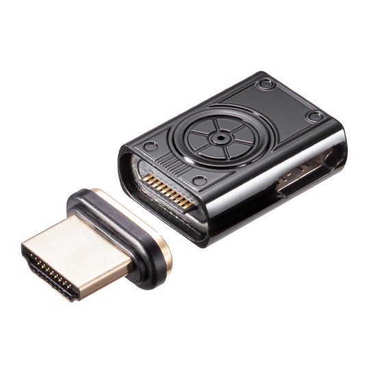 HDMIケーブルをマグネットで簡単着脱できる8K/60Hz、4K/120Hzに対応したL型のHDMIアダプタ