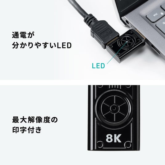 HDMIアダプタ マグネット L型 右/左向き 横 L字 8K/60Hz 4K/120Hz 配線簡単 ドライバ不要 通電LED テレビ プロジェクター ゲーム 変換アダプタ コネクタ ブラック