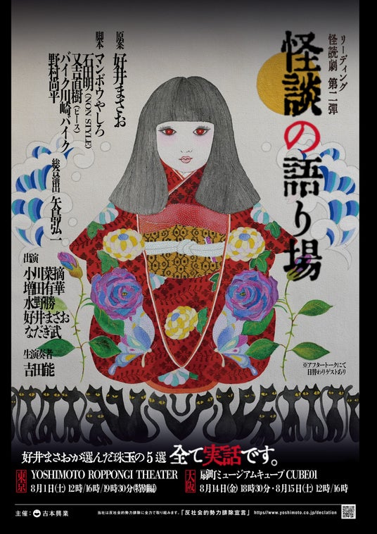 また東京最終公演《8月1日(土)19:30回》は『怪談の語り場』特別編 的場浩司と怪談を語り合う会を開催。芸能界きっての怪談通として知られる的場浩司をゲストに迎え、キャストと共にディープな怪談の世界を語り尽くす、一夜限りの特別トーク公演をお届けします。