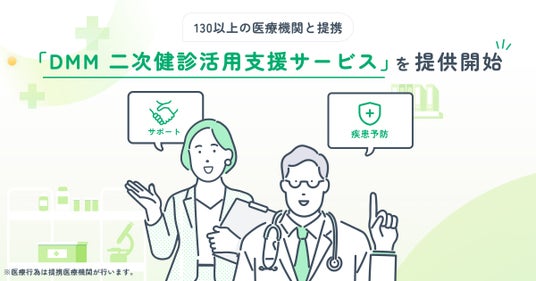 合同会社DMM.com(本社:東京都港区、イノベーションカンパニーCEO:緒方悠、以下DMM)が展開するDMMヘルスケアは、130以上の医療機関と提携し、厚生労働省の給付制度を活用することにより※1、企業の費用負担なく、従業員の生活習慣病リスク対策につなげる「DMM 二次健診活用支援サービス」の提供を開始しました。