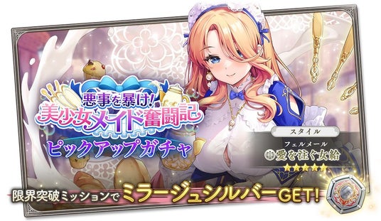 「悪事を暴け!美少女メイド奮闘記ピックアップガチャ」を期間限定で開催いたします。
