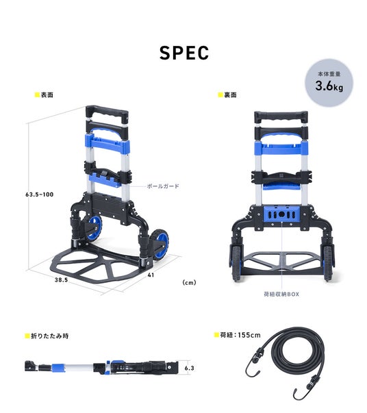 台部分には頑丈なスチール素材を採用し、最大69kgまでの荷物を運べるため、重い荷物の運搬も安心して行えます。