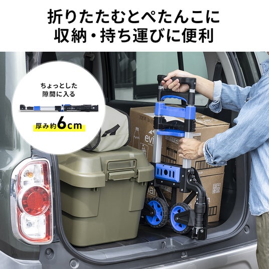 普段の買い物やキャンプ用品の運搬、倉庫での荷物運びなど様々な場面で使える2輪の折りたたみキャリーカート