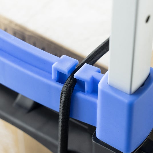 荷物をしっかり固定できる荷紐も付属しており、収納ボックス付きで紛失の心配もありません。さらに安全に配慮したポールガードも備わっており、荷物を保護します。
