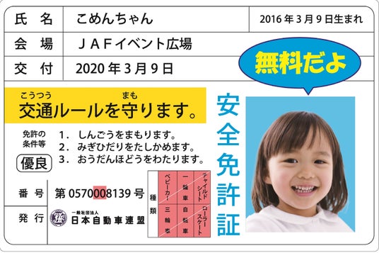 内容:JAF会員向け特別優待、子ども安全免許証の発行