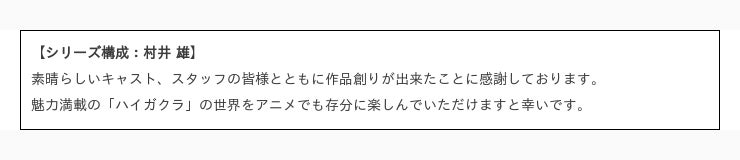 ■コピーライト表記:(C)高山しのぶ・一迅社/ハイガクラ製作委員会