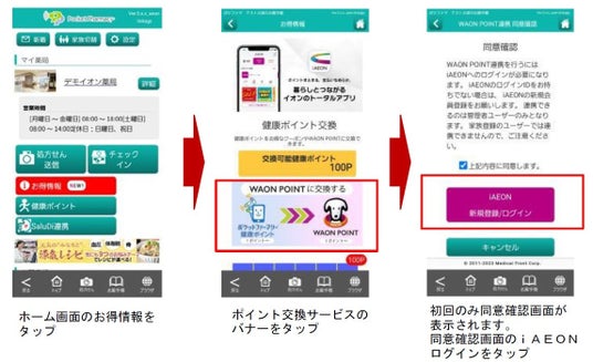 イオンリテールは3月28日(金)、株式会社メディカルフロントの電子版お薬手帳「ポケットファーマシー」で、健康維持に必要な習慣や行動に付与される“健康ポイント”を“WAON POINT”へ交換するサービス※1)を開始します。