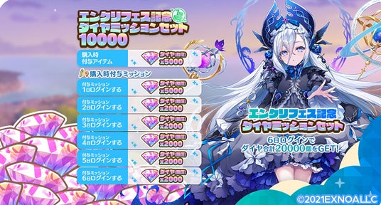 エンクリフェス開催記念に、キャラの育成に役立つ「聖典の紙片」がたっぷりおまけについた商品と、購入後から6日間毎日ダイヤを入手できるお得なダイヤミッションセットを販売中!