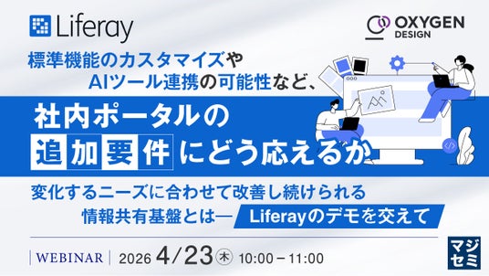 本セミナーでは、社内ポータルに次々と求められる追加要件に応えながら、現場にとって使いやすい環境を継続的に実現していくために、なぜ拡張性やカスタマイズ性に優れた基盤が求められるのかを整理します。その上で、「Liferay DXP」により、標準機能のカスタマイズやAIツール連携のニーズへの対応可能性(カスタマイズによる拡張を含む)、また変化する要件に合わせて改善し続けられる情報共有基盤をどのように実現できるのかを解説します。セミナー内では、デモを通じて実際の操作や構築方法、拡張性の考え方もご紹介し、拡張の方向性や活用イメージをお伝えします。