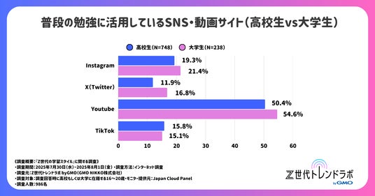 GMOインターネットグループのGMOインターネット株式会社の連結会社で、総合マーケティング支援事業を展開するGMO NIKKO株式会社(代表取締役社長執行役員:佐久間勇 以下、GMO NIKKO)が提供する「Z世代トレンドラボ byGMO」では、高校生・大学生986人を対象に、「Z世代の学習スタイルに関する自主調査」を実施しました。