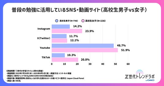 ■高校生が普段の勉強に活用しているSNS・動画サイトの男女別調査について
